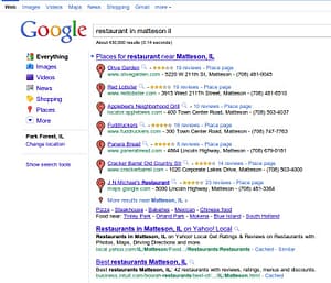Local listings usually displayed when searching for terms which include your local city name (such as Matteson, lawyers or Orland Park, dentist or Tinley Park, plumbing).